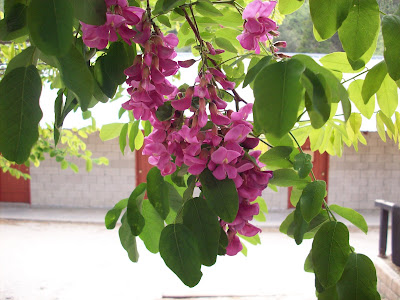 Earlier today, while I was walking up to the tabernacle, I saw three deer in the bottom of the gully pulling on the grass down there- Two bucks with velvet stubby antlers and a doe. Before I could snap a good picture they bounded off up the hillside. The picture below is the only one I got.